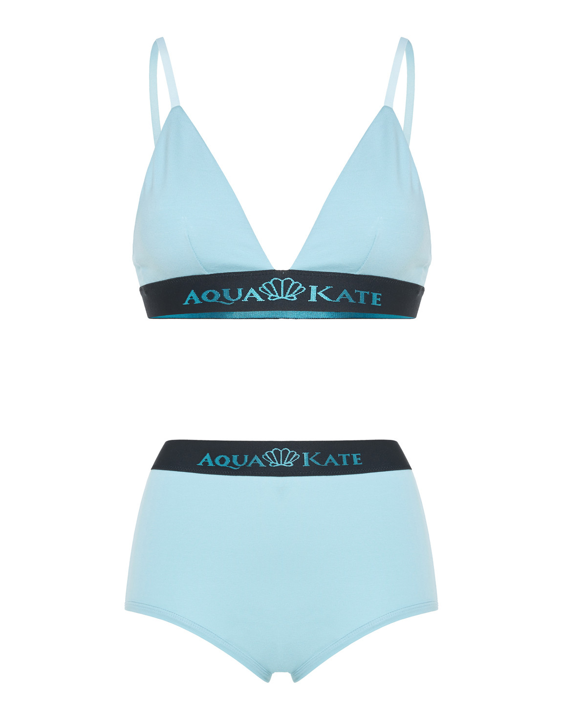 Το Aqua Kate Essential Set σε Light Blue περιλαμβάνει τριγωνικό bralette και ψηλόμεσο brief με το χαρακτηριστικό λάστιχο Aqua Kate. Κατασκευασμένο στην Ελλάδα από premium ιταλικό ύφασμα για άνεση και κομψότητα κάθε μέρα.